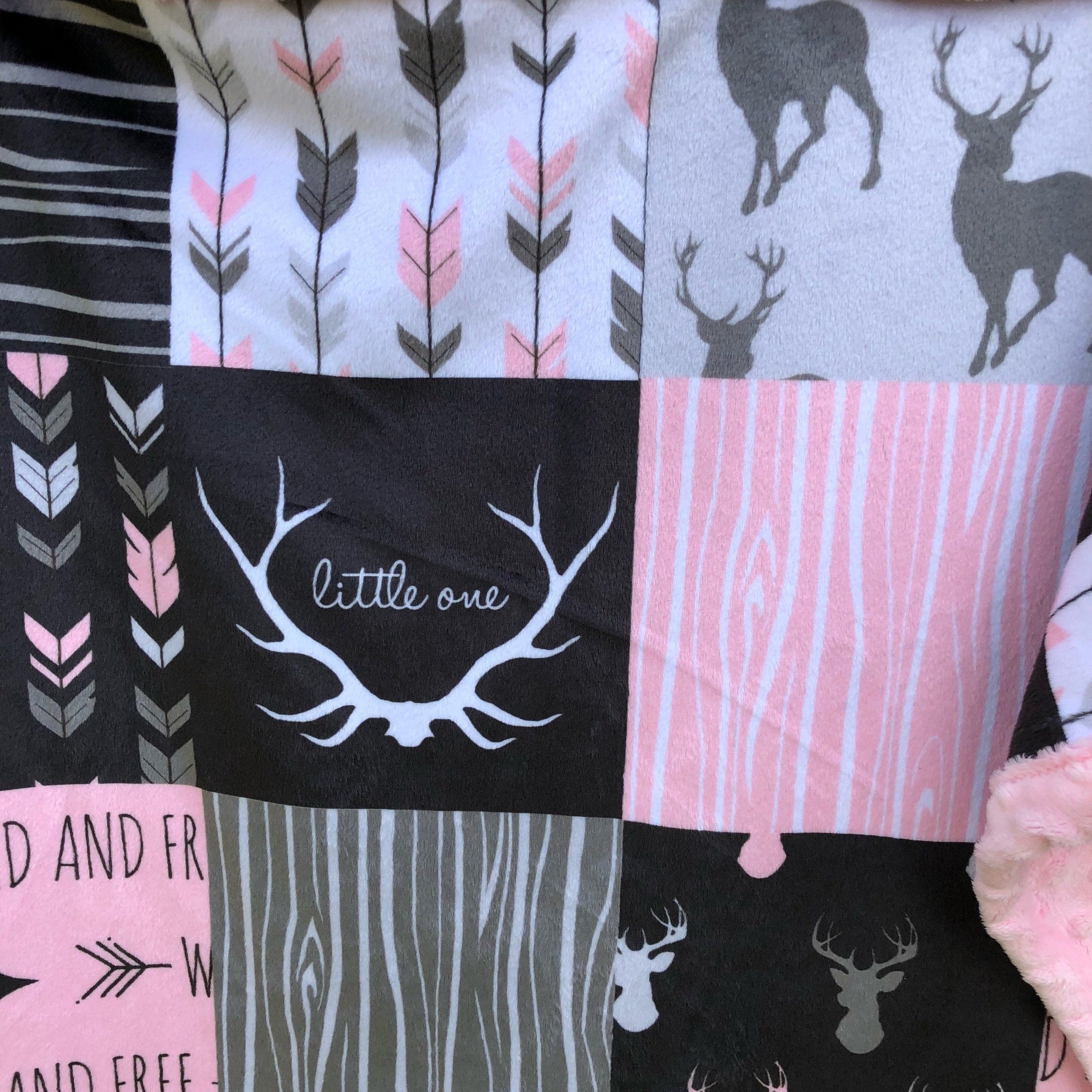 Baby Girl Deer Blanket Buck Woodland Arrows Minky Blush Etsy